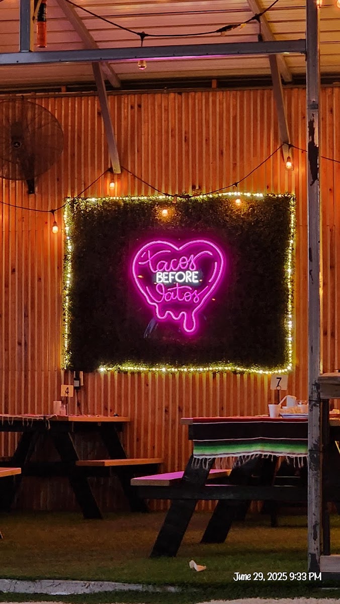 ●Drive-thru area. ●They come to your car to take your order. ●It does take a bit of time for your order to be ready ●There is an area for you to sit if you want to eat outside ●Beans are super spicy ●Try the bistek loaded potato ●Tacos are good but served with double tortilla. My opinion it's a waste of food...could be used for another order